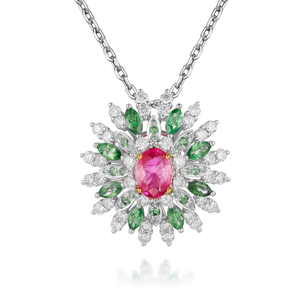 材质:18K、祖母绿、红宝石
